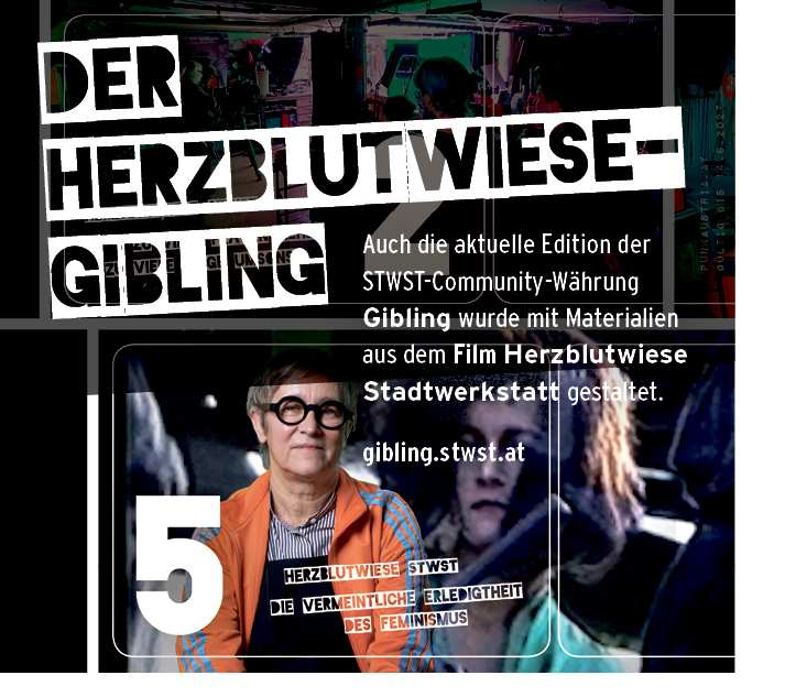 Auch die aktuelle Edition der STWST-Community-Währung Gibling wurde mit Materialien aus dem Film Herzblutwiese Stadtwerkstatt gestaltet.
