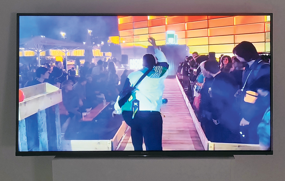 Das Projekt Nebelkegeln als Video im Ausstellungsraum bei MFRU31 (Foto: Tanja Brandmayr)